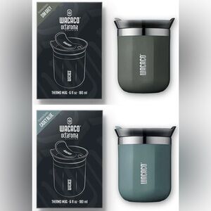 Lot of 2 Octaroma 6 oz Thermal Mugs / Coffee Tumblers by Wacaco. 1 each in Cadet Blue and Dim Grey.