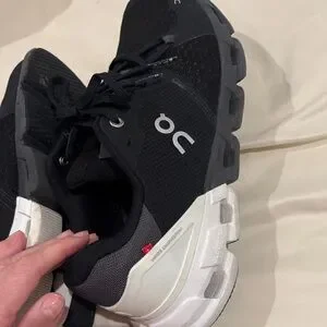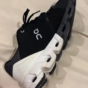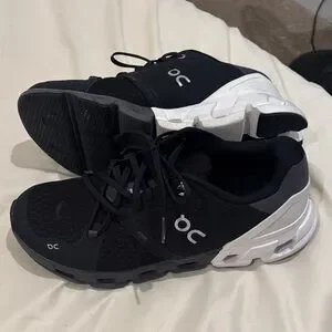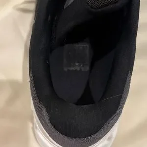 Stylish athletic shoes with a modern design. Black upper with white accents. Ideal for running and sports. These are in great condition.