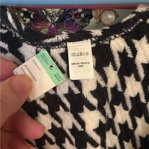 ❤️🩷Black and White Houndstooth Poncho with fringe at bottom!NWT