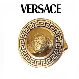 Quiet Luxury Versace pin with iconic Medusa emblem. Stamped back Gianni Versace, 1990s