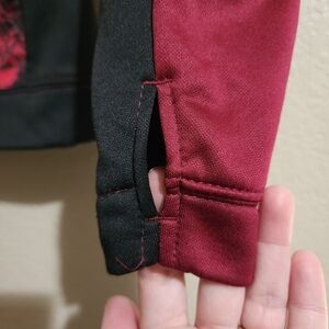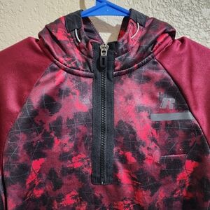 Russell athletic red and black camo pullover hooded sweatshirt. Kangaroo pocket. Half zip for a little extra room to pullover kids wearing hats or extra layers.