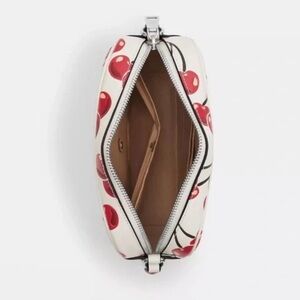 Stylish and playful, this Coach crossbody bag features a charming cherry print. Perfect for adding a pop of color to any outfit.