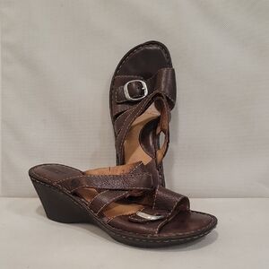 BORN BROWN LEATHER 2-1/2" WEDGE HEEL SANDAL (sz 9)