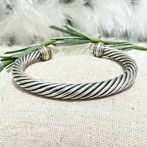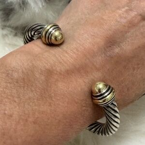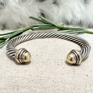 David Yurman 7mm 14K Gold Dome .925 Cable Cuff Bracelet Sz M
