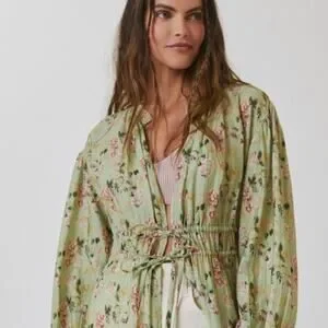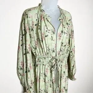 NWT ANTHROPOLOGIE Current Air Green Duster Floral Boho Style Spring Summer