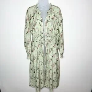 ANTHROPOLOGIE Current Air Green Duster Floral Boho Style Spring Summer