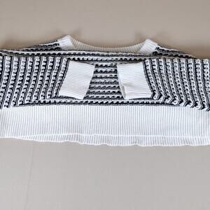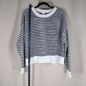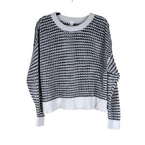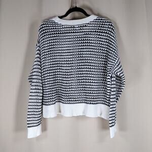 Old Navy Black White Striped Knit Cotton Pullover Patterned Crewneck Sweater