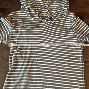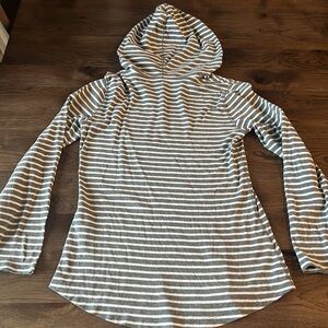 Eddie Bauer Gray and White Lightweight Striped Women's Hoodie Top size Small