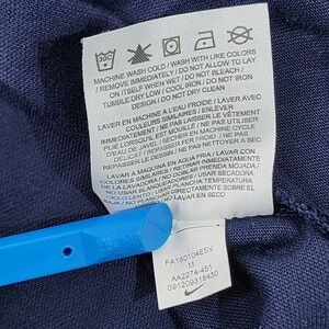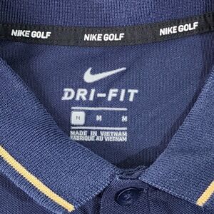 The shirt is size medium with a chest size of 20 inches and a shirt length of 27 inches. It is designed to fit regular and has short sleeves. The color of the shirt is blue and it is made in Vietnam. It is part of the Nike Golf product line and has a Nike Dri-Fit model. The shirt is perfect for those who enjoy golf and is themed around university sports.