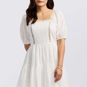 Breeze through summer in the Lara Jean women’s mini dress, crafted in soft cotton with romantic puff sleeves, a square neckline, and delicate eyelet lace trim. This lightweight, tiered dress offers an airy feel and timeless femininity—perfect for picnics, vacations, or weekend brunch.