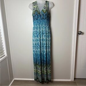 Mlle Gabrielle Maxi Dress Size Medium Sleeveless V-Neck Stretch Blue Black Green