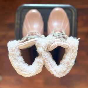 Cozy and stylish winter boots. Blush color with fur lining. Ideal for cold weather. NEVER BEEN WORN!!!
