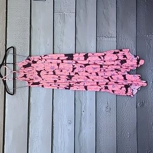 105 So pretty printed maxi slip featuring a tiered ruffled hemline with racerback straps and a smocked bodice.