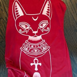Dress 2- cotton, also body conscious, good stretch so can move around comfortably. Could be a laid back date day or night date. Plus, if u are a cat-lover, the Egyptian Bastet cat caricature adds some approachable humor.