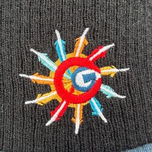 Vibrant COOGI beanie with multicolor embroidery. Stylish and cozy .