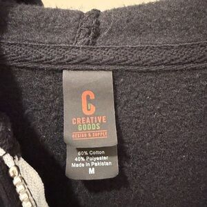 Stylish black zip-up hoodie featuring a pink logo on the chest. Comfortable and versatile for everyday wear. Purchased at the theater because I was cold, only worn that one time - excellent condition!