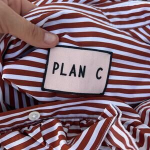 Plan C Ruffle Collared Crisp Cotton Shirt Dress Preppy Striped 42 Size 6