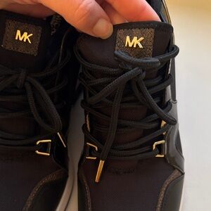 Michael Kors Women’s Black & Gold Liv Logo Mixed- Media Trainer Sneaker size 8.5