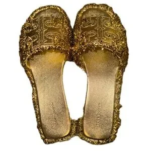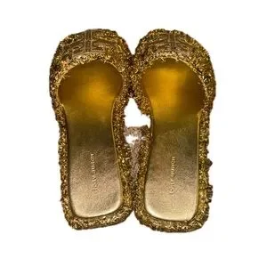 Elegant gold sandals with fringe detail. Perfect for chic style.