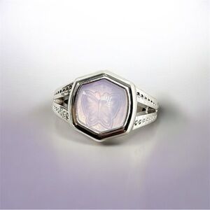 Be the life of the party in the Davie Intaglio Silver Statement Ring in Lavender Opalite Glass Butterfly. With high-shine metal details and subtle pops of color, choose from an etched dragonfly, hummingbird, and butterfly design to add a personal touch to your ring stack.