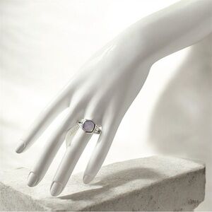 Kendra Scott Davie Intaglio Silver Ring in Lavender Opalite Glass. Size 8