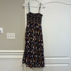 NWT Evereve Tessa Dress Blue/Brown Print. Size: Medium.