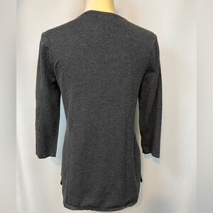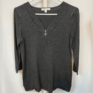 Grey Long Sleeve V-Neck Sweater With Zipper Small