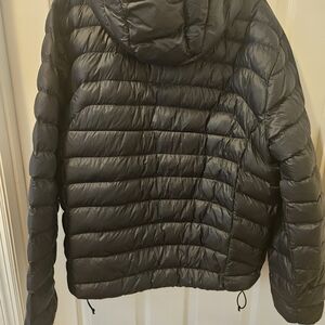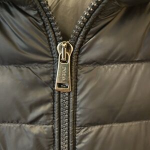 Stylish dark Navy Blue puffer by Ralph Lauren. Features a bold red logo. Perfect for chilly days.