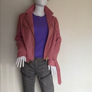 New Condition. Clean. Bubble Gum Pink Motorcycle Jacket with belt. Gold hardware. Pink.