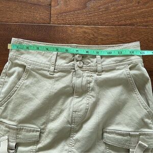 Trendy Y2K style beige cargo mini skirt from No Boundaries. Front flap pockets with fabric ties.