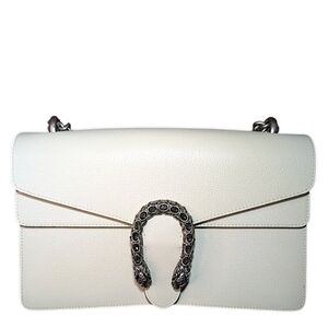 Gucci White Leather Shoulder Bag with Metal Accent