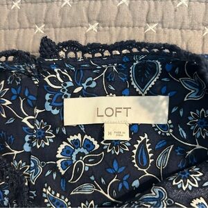 LOFT Women’s Navy Floral Cropped Smocked Top with Ruffled Hem. Sz M