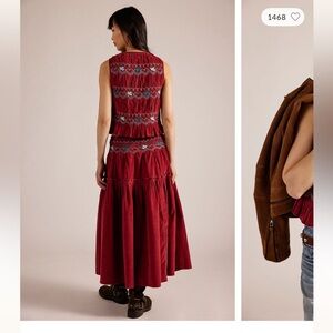 Unleash your inner charm with this stunning maxi skirt set, featuring a fitted, figure-hugging tank in a flattering smocked cotton fabrication, and a tiered maxi skirt with matching embroidered trim.