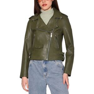 About the brand: Energetic, eclectic, and edgy. Liz Leather Jacket in Greek olive Approximately 21.75in from shoulder to hem Measurements taken from a size medium and may vary slightly by size. 100% leather Lining: 100% polyester Clean by leather expert Imported