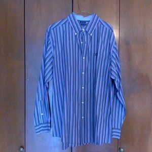 Gently used, navy blue striped long sleeve shirt. No rips tears or stains