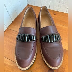 FRANCO SARTO CARVER Red Oxblood Leather Loafers Rhinestone Embellishment 9