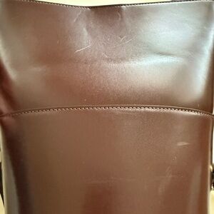 Elegant leather shoulder bag with a minimalist design. Features an adjustable strap for comfort. Perfect for daily wear. Comes with dust bag and an additional strap. Only used a handful of times, some minor wear as seen in photos.