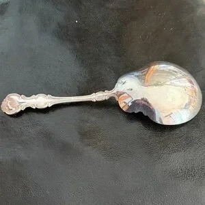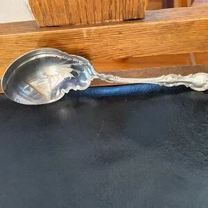 Enhance your dining experience with this elegant silver serving spoon from the 1835 R Wallace collection.
