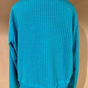 Vibrant teal (not blue) sweater with a playful burger motif. Eye-catching and fun design. You won’t find this at a lesser price on the internet!