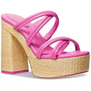 MICHAEL Michael Kors NWT Designer 5” Corrine Slip On Strappy Espadrille Platform Cerise Sandals Size 8.5