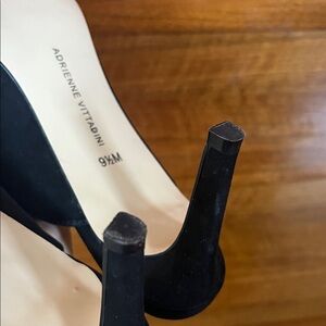 Elegant black suede mules with pointed toe. Slip-on design. Perfect for any occasion. These are absolutely gorgeous! Only worn for approximately one hour for a formal event. I see nothing wrong with them. As always, smoke and pet free home. Same day shipping! Willing to negotiate prices.