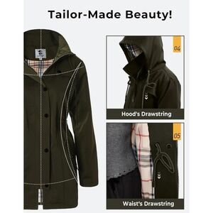Saphirose Women's Long Hooded Anorak Style Windbreaker Jacket Outdoor Raincoat M