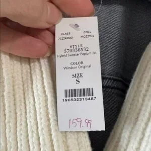 Chic denim jacket with a soft cream shawl collar. Ideal for casual elegance.