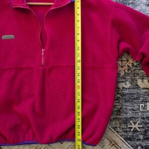 VTG Columbia Fleece Half Zip Pullover Jacket Pink Magenta Blue Size XL USA Made