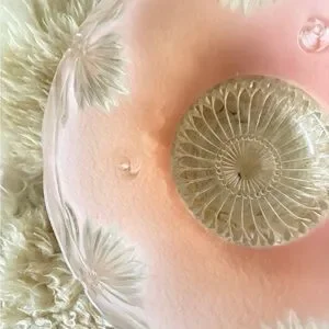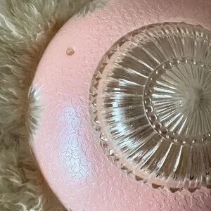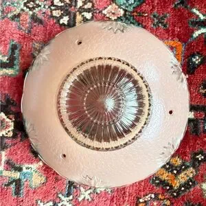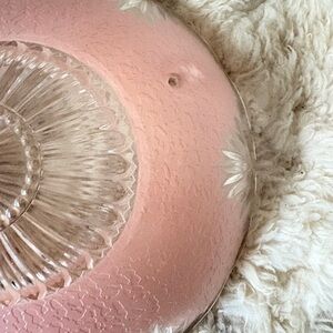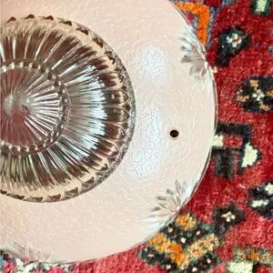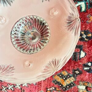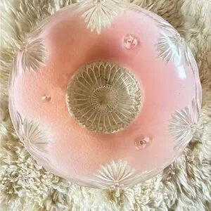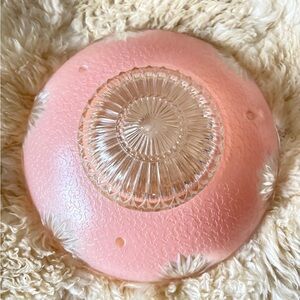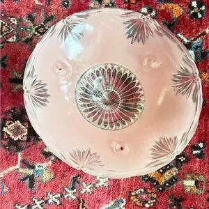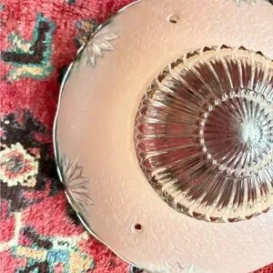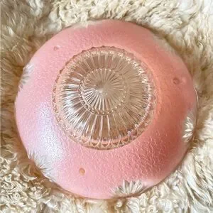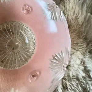 Charming pink glass ceiling light shade with intricate clear details. Ideal for a vintage-inspired decor.