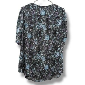 Torrid Harper Floral Blouse Size 2X Gray Purple Blue Short Sleeve V-Neck Boho