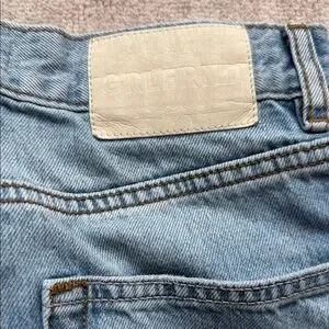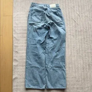 Classic blue denim jeans with a straight leg design. Perfect for casual wear.