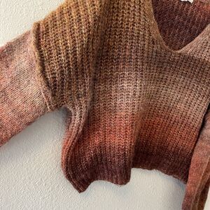 Rewind Women's Sweater Size XL Ombre Brown Tones Oversized Balloon Sleeves Boho