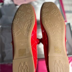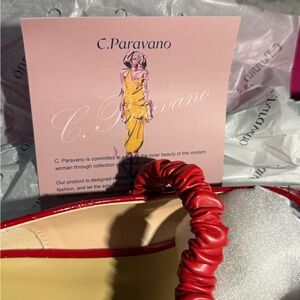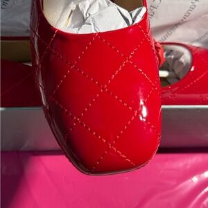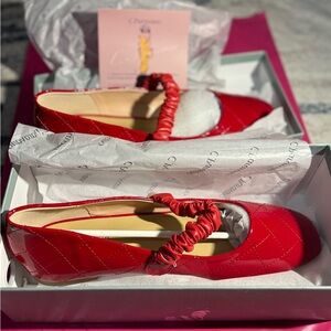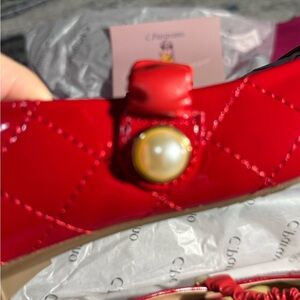 Elevate your style with these chic red quilted flats by C. Paravano. Featuring a stylish strap and comfortable fit, these shoes are perfect for any occasion. Ballet style with pearl detail strap. Will ship in box. Box has a little damage.