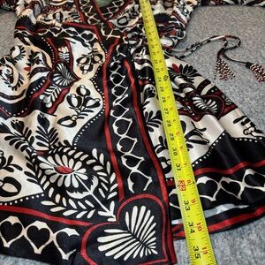 Farm Rio wrap dress, scarf print mini dress, boho wrap dress, Farm Rio Passion dress, beaded tie dress, retro scarf dress, tunic wrap top, vacation dress, festival dress, size medium dress